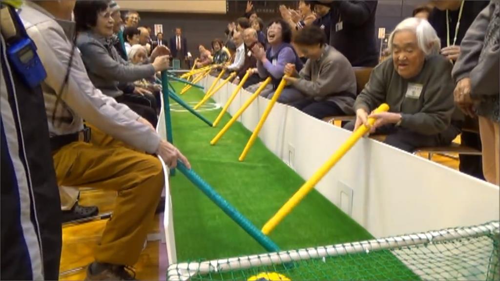 手足球是個常常在室內運動場會出現的桌遊活動,而現在日本人把這樣的遊戲給真人化,讓銀髮族可以聚在一塊比拚,別看這樣的運動,其實玩起來相當刺激。