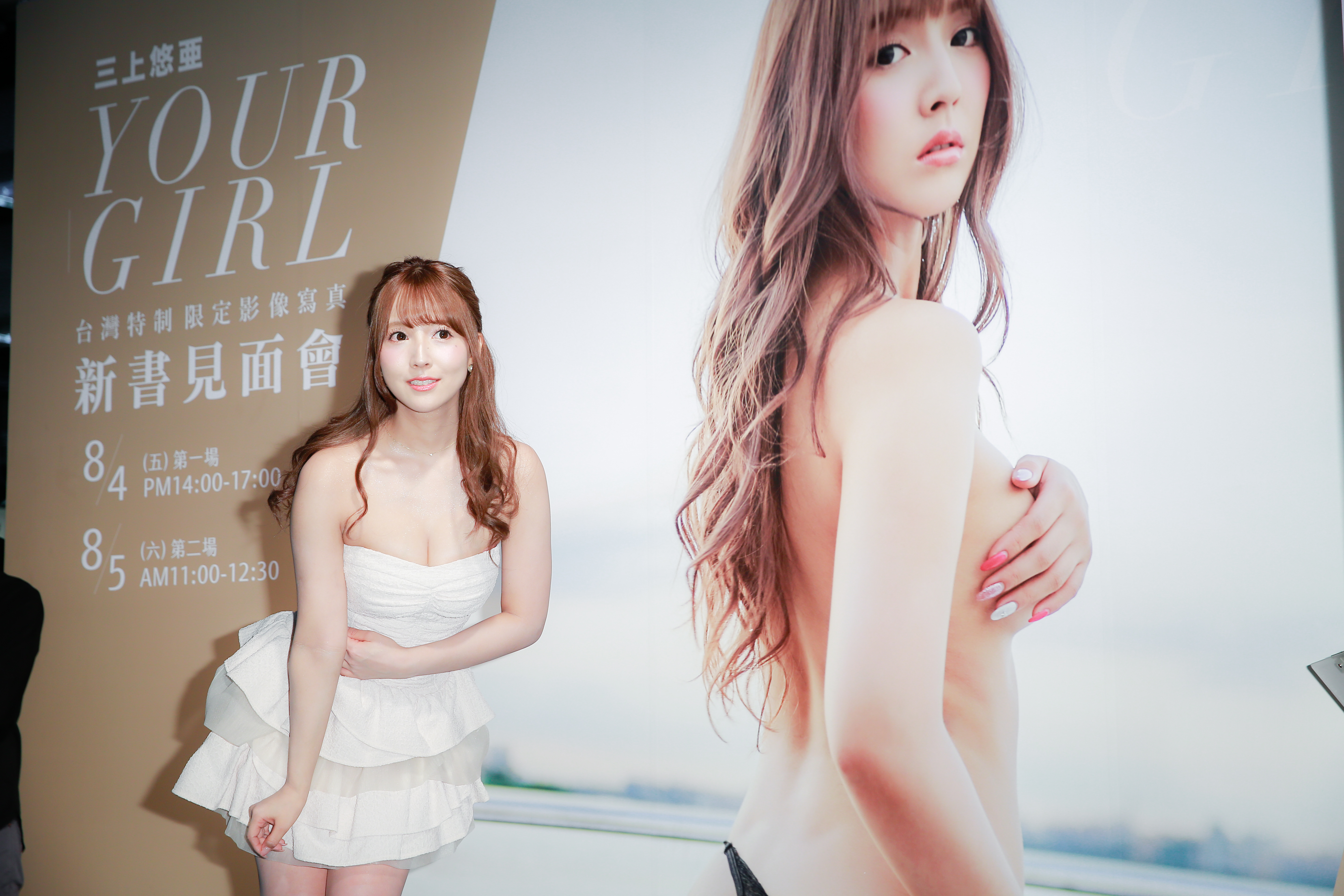 日本F奶AV女優三上悠亞現身成人博覽會,帶著她最新出版寫真集《Your Girl》跟粉絲見面,現場老早就擠滿想見到本人的男性粉絲,穿著白色小洋裝的三上悠亞一出現,立刻炒熱氣氛,媒體和粉絲手上的閃光燈沒停過,三上悠亞也不時擺出不同的姿勢,滿足大家需求。