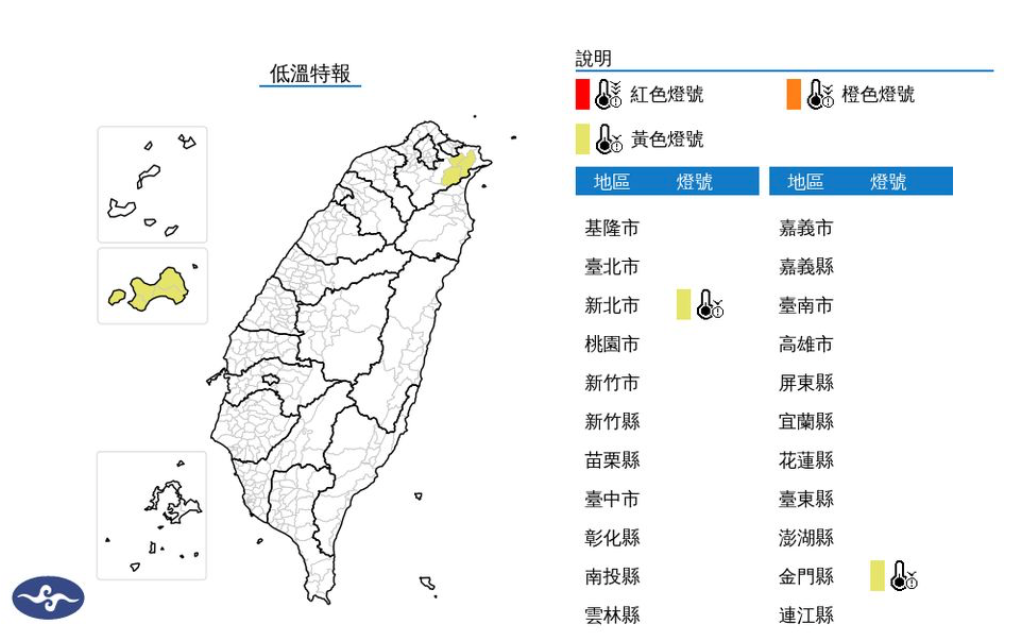 ![]() | 大陸冷氣團發威!氣象署發布2縣市低溫特報 | 冷氣團南下!今晨石門僅10.7度 清明連假可望回暖轉晴 | 今起濕冷3天「低溫探10度」 清明連假天氣好轉 | |