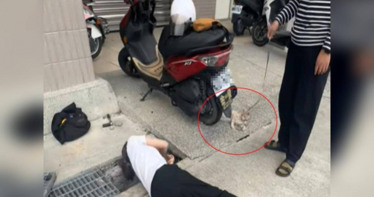 溝中救鱉!貓對水溝「狂喵多天」 十多人花1小時營救