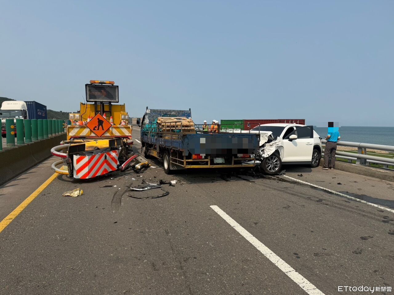 快訊/緩撞車執勤挨撞!林口台61線連環車禍 南向一度全線封閉
