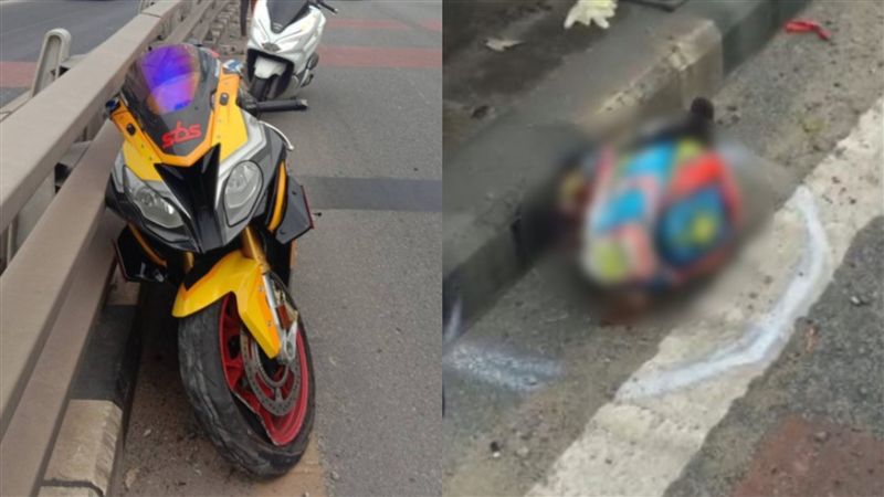 描述: 泰國曼谷萱鑾區(Suan Luang)日前發生一起驚悚死亡車禍,一名37歲男子潘泰倫(Pattarun)騎乘BMW重機S1000RR出門,沒想到行經碧武里路段一處高架橋時,疑似車速太過失控自撞高架橋護欄,當場屍首分離,頭顱連同安全帽噴飛到20公尺遠地方。(編輯:陳昱哲)