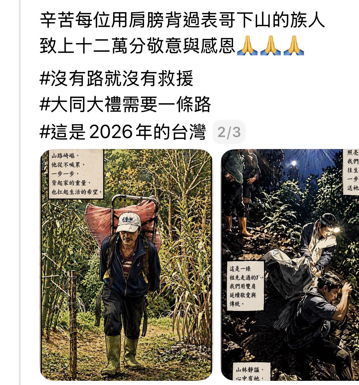 一個住在花蓮太魯閣大同大禮部落的原住民在家裡心肌梗塞去世,沒有救護車、沒有即時救援,因為,沒有路。 該部落沒有對外道路,連機車可以通行的路都沒有。